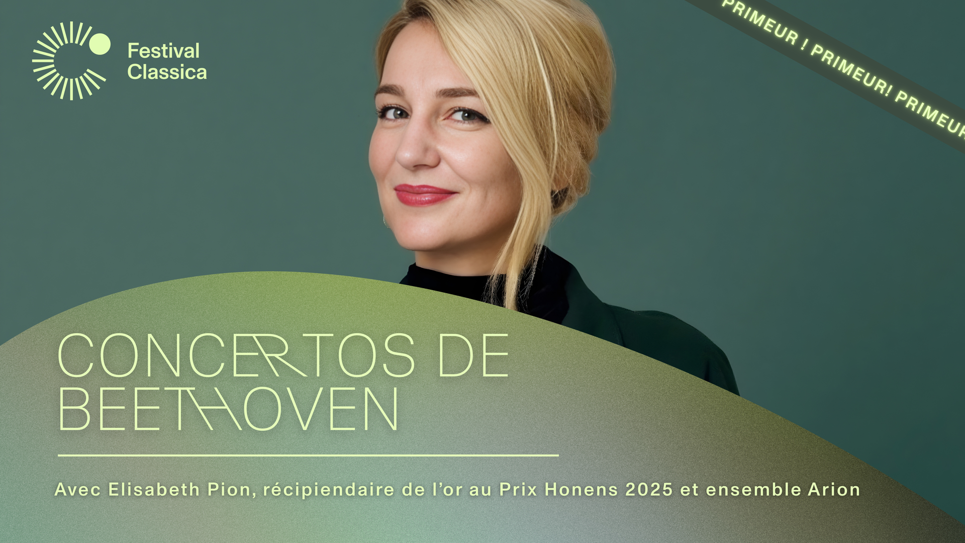 Le Festival Classica et l'orchestre Arion sont fiers de présenter l’intégrale des concertos pour piano de Beethoven avec Elisabeth Pion, gagnante du premier prix au concours Honens sous la direction Mathieu Lussier. Sur magnifique instrument d'époque pianoforte Broadwood 1827 (propriété du Festival Classica) cette intégrale s'amorce avec les trois premiers concertos, dans ce concert qui sera suivi d'un enregistrement discographique. En complément de programme, Arion fera revivre la musique de Sophie Gail, contemporaine de Beethoven, en interprétant l'ouverture de son opéra-comique La Sérénade.